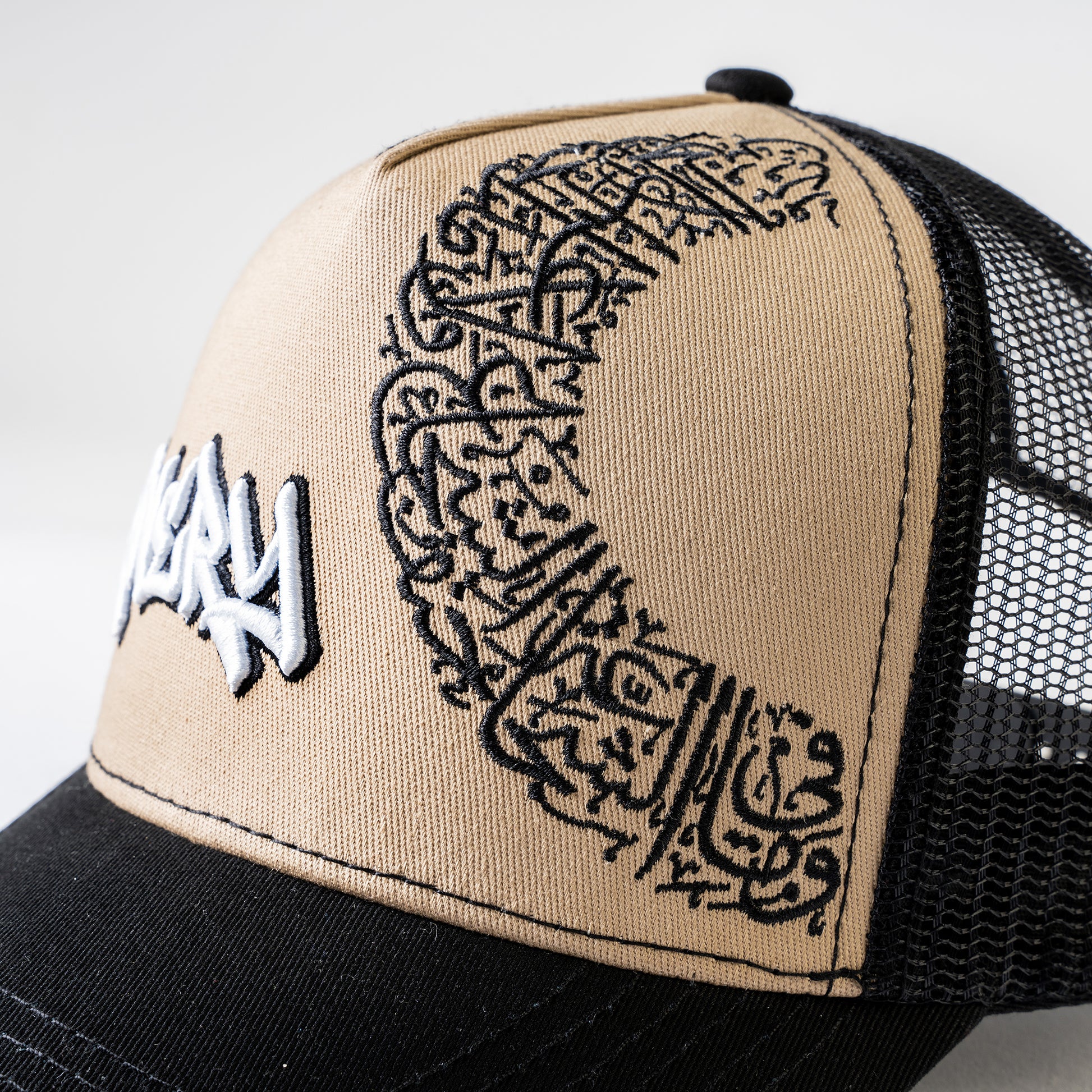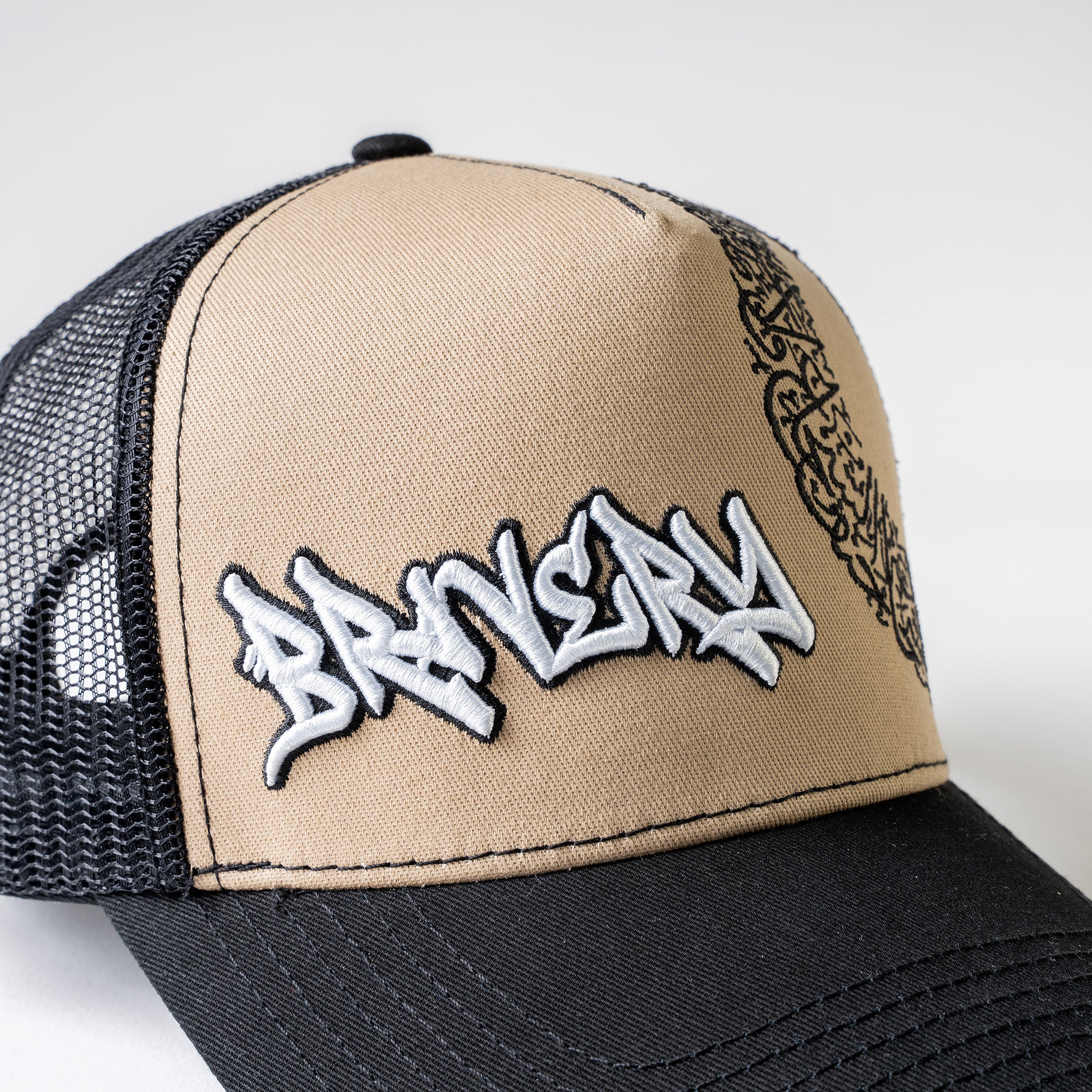 الشجاعة مكتوبة باللغة الإنجليزية، وعلى الجانب الآخر من القبعة، هناك اقتباس يقول: "الشجعان لا يموتون لأنهم شجعان، والجبناء لا يعيشون طويلاً بسبب جبنهم"، والذي يُترجم إلى العربية: