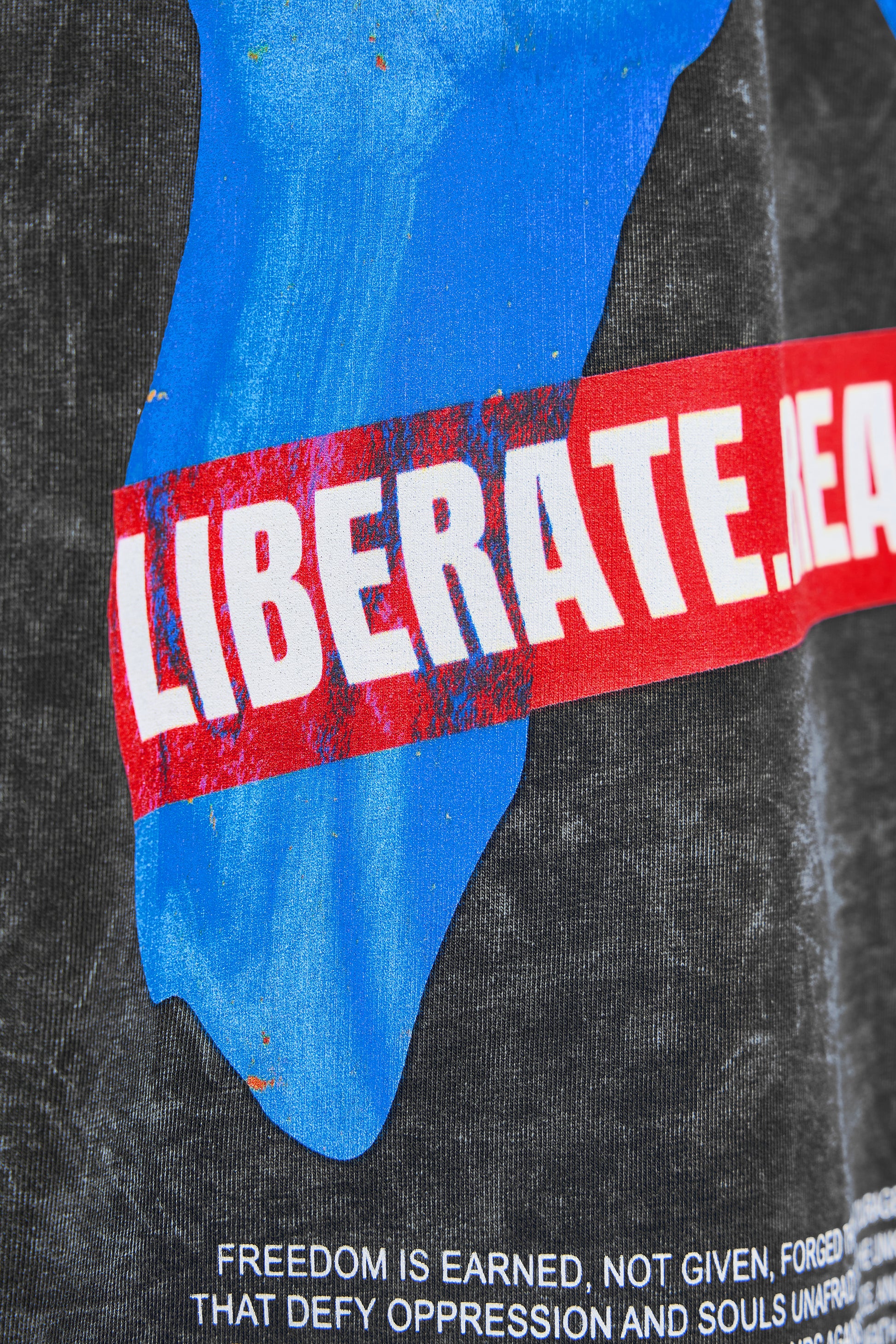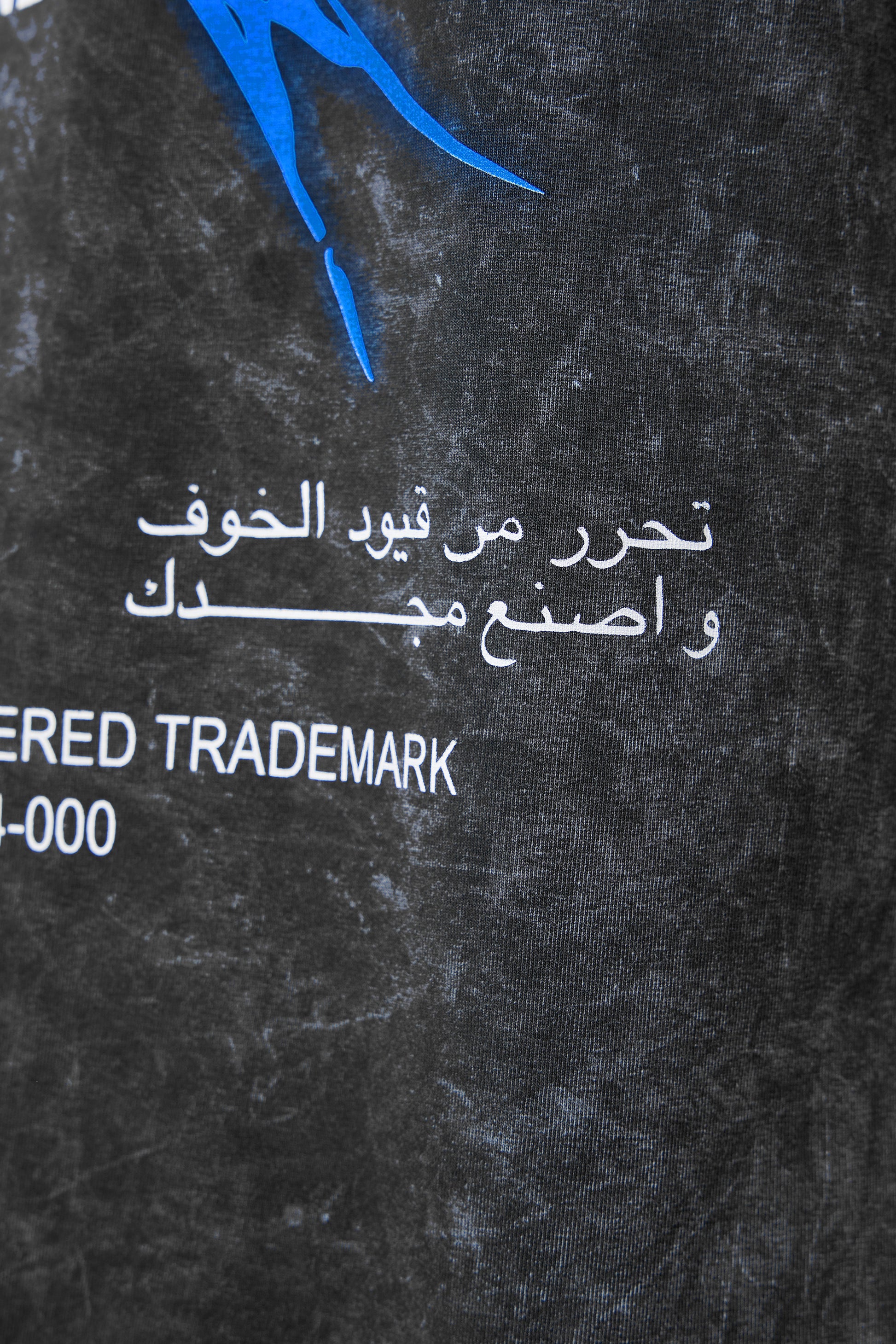 “Freedom” in a unique Arabic font paired with the powerful phrase: “Break free from the chains of fear and build your legacy.” On the back, two