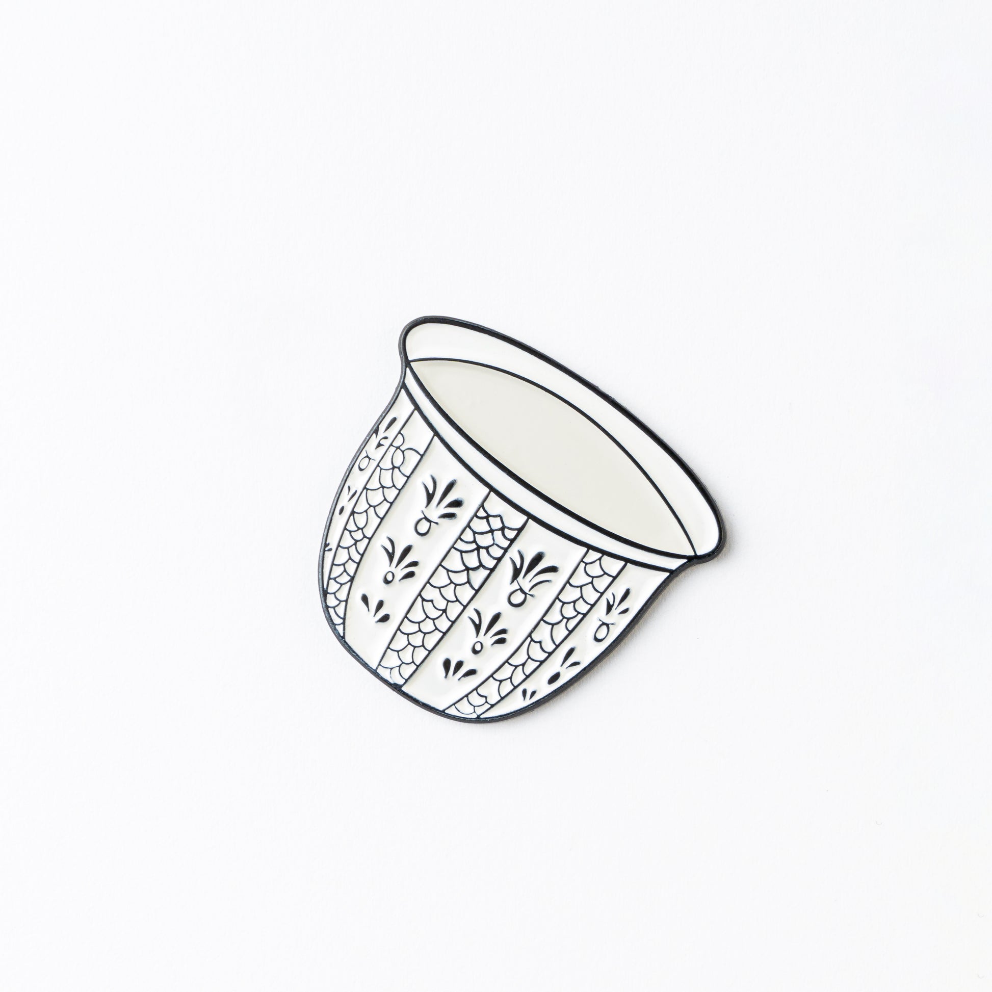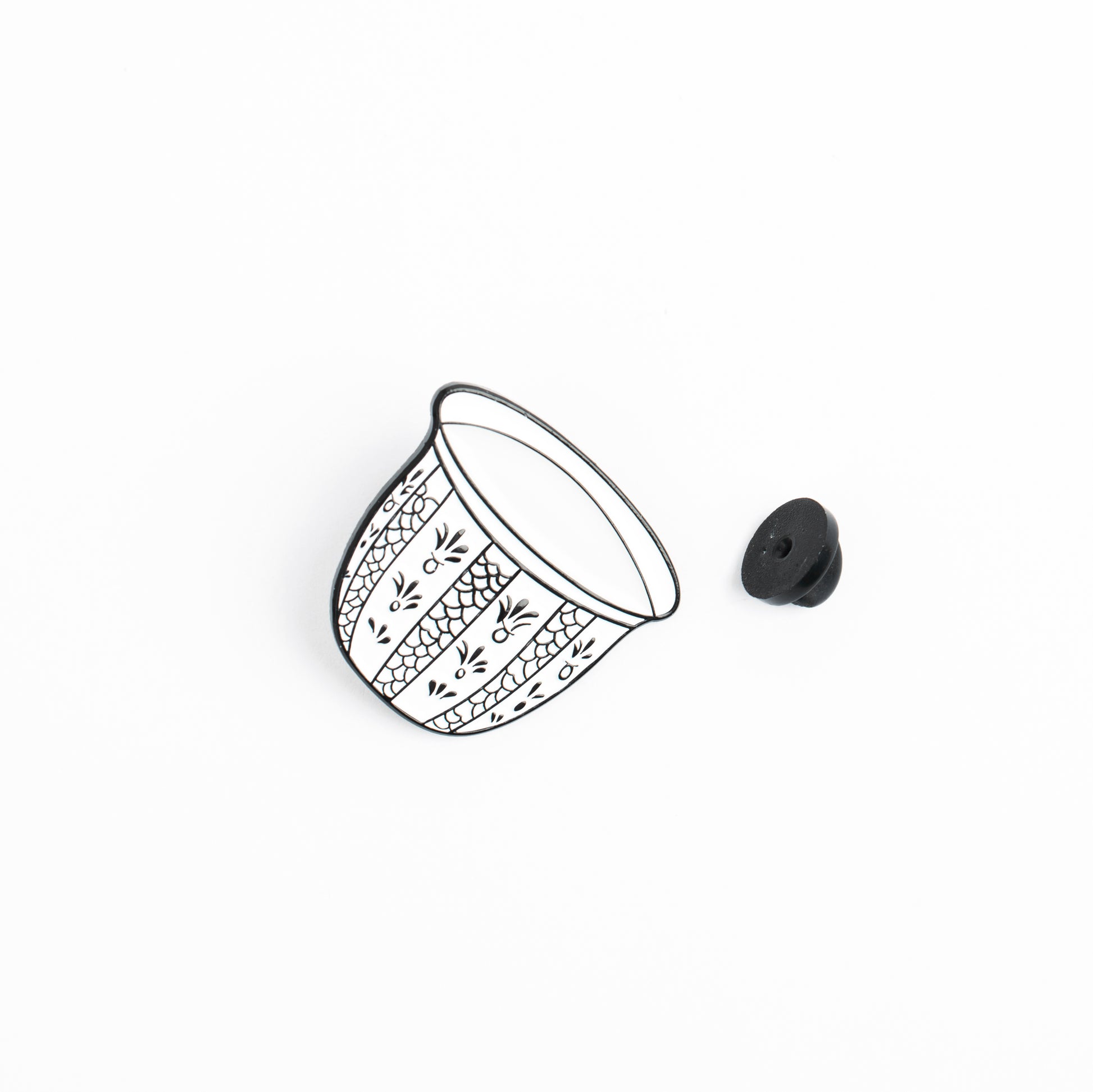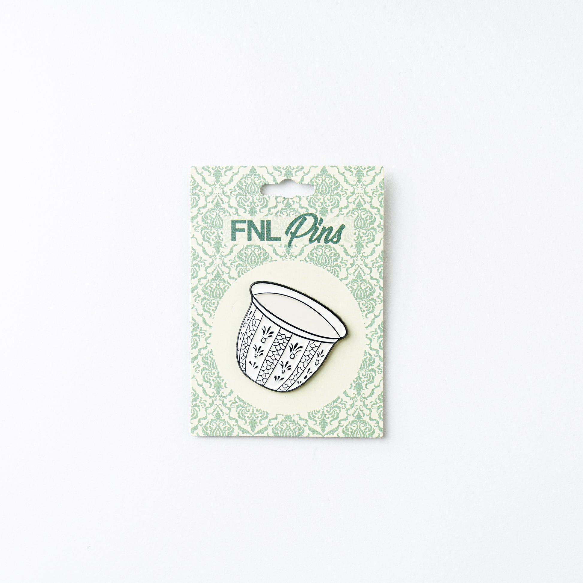 فنجان القهوة العربي الأيقوني رمز للضيافة والثقافة تم تحويله إلى دبوس قابل للجمع.