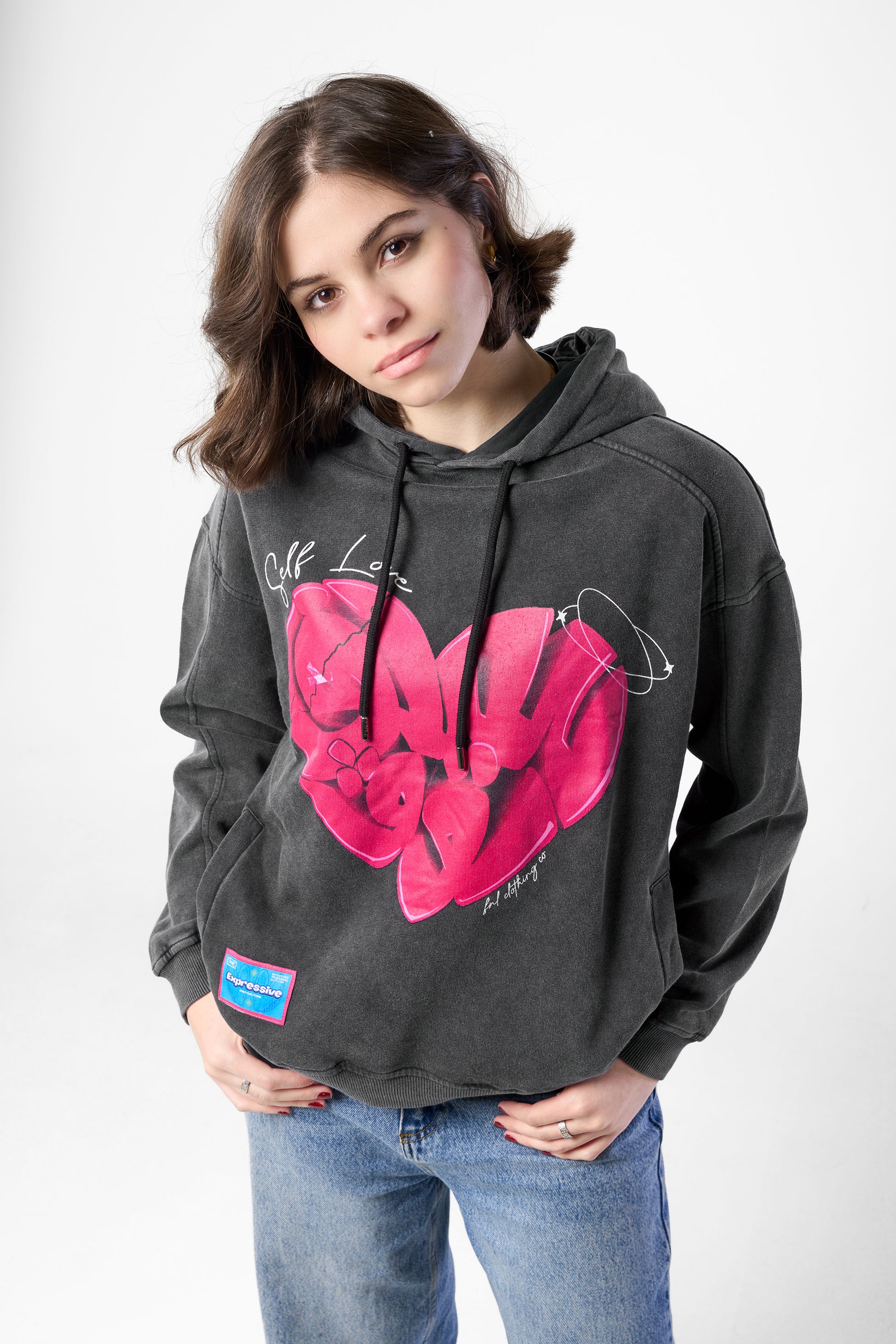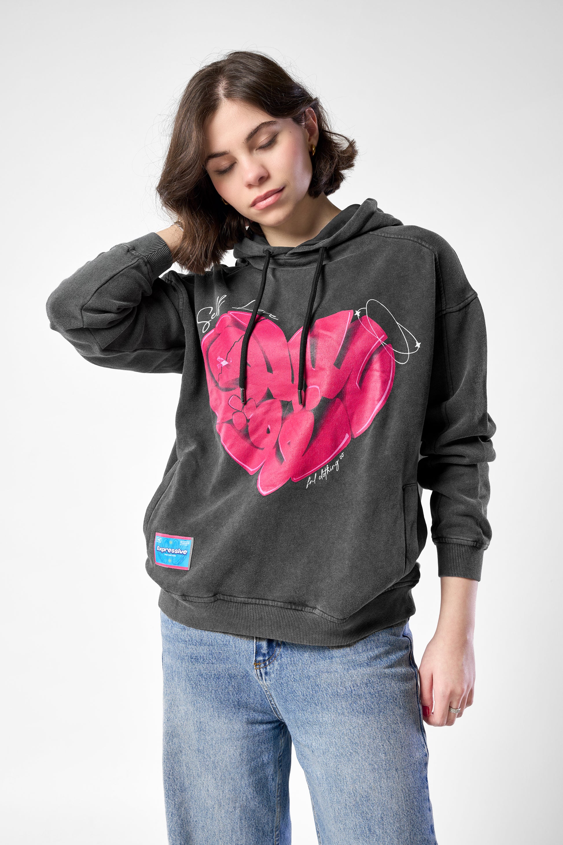تتميز القلنسوة بعبارة "حب الذات" مكتوبة باللغة العربية بتصميم إبداعي مع طباعة تشكل شكل قلب. داخل هذا القلب، تظهر شقوق، وهو ملفوف برباط يرمز إلى رسالة أعمق: إذا لم تقبل شقوقك، فلن تتمكن من حب نفسك بالكامل.