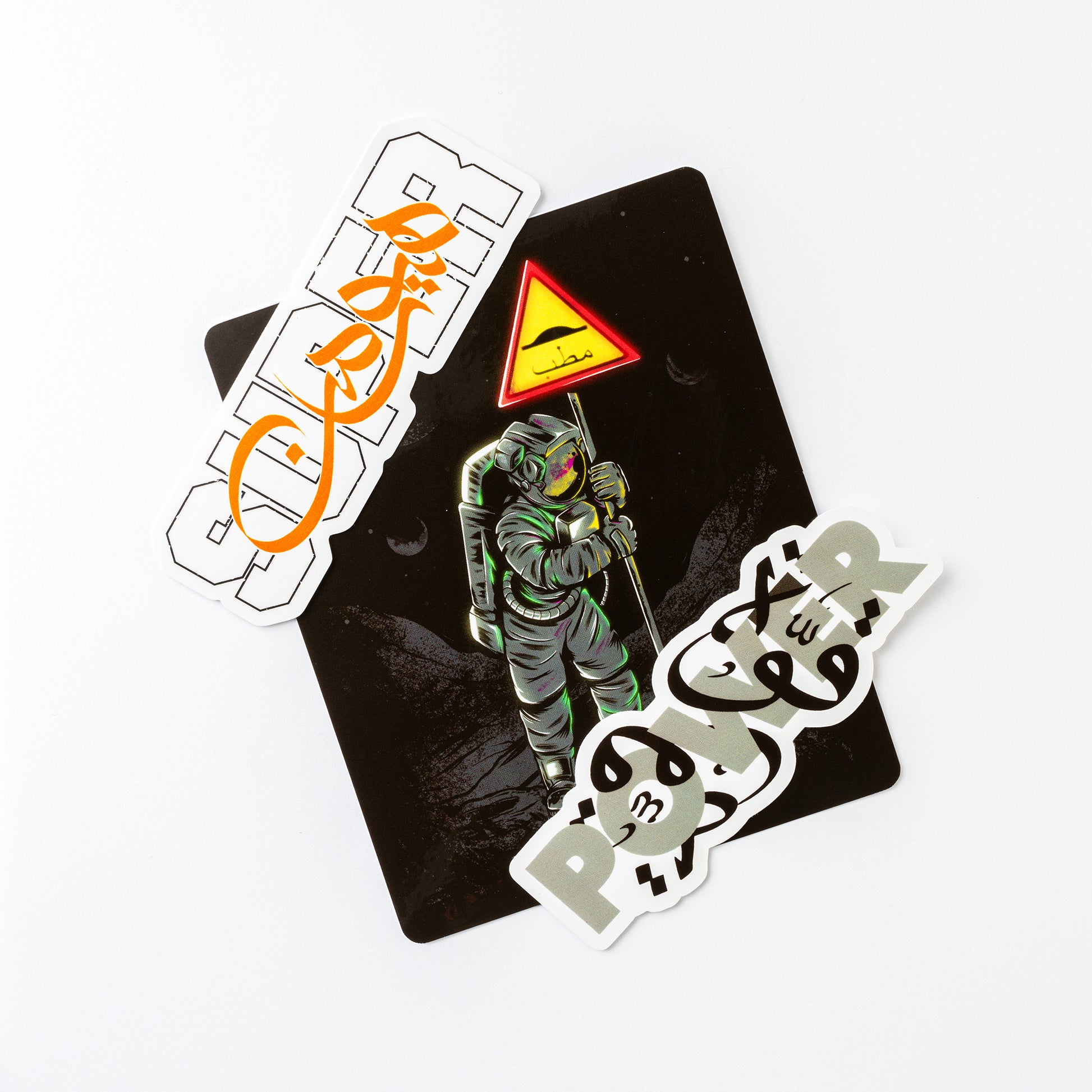 ثلاث ملصقات تحمل تصاميم FNL الشهيرة:
