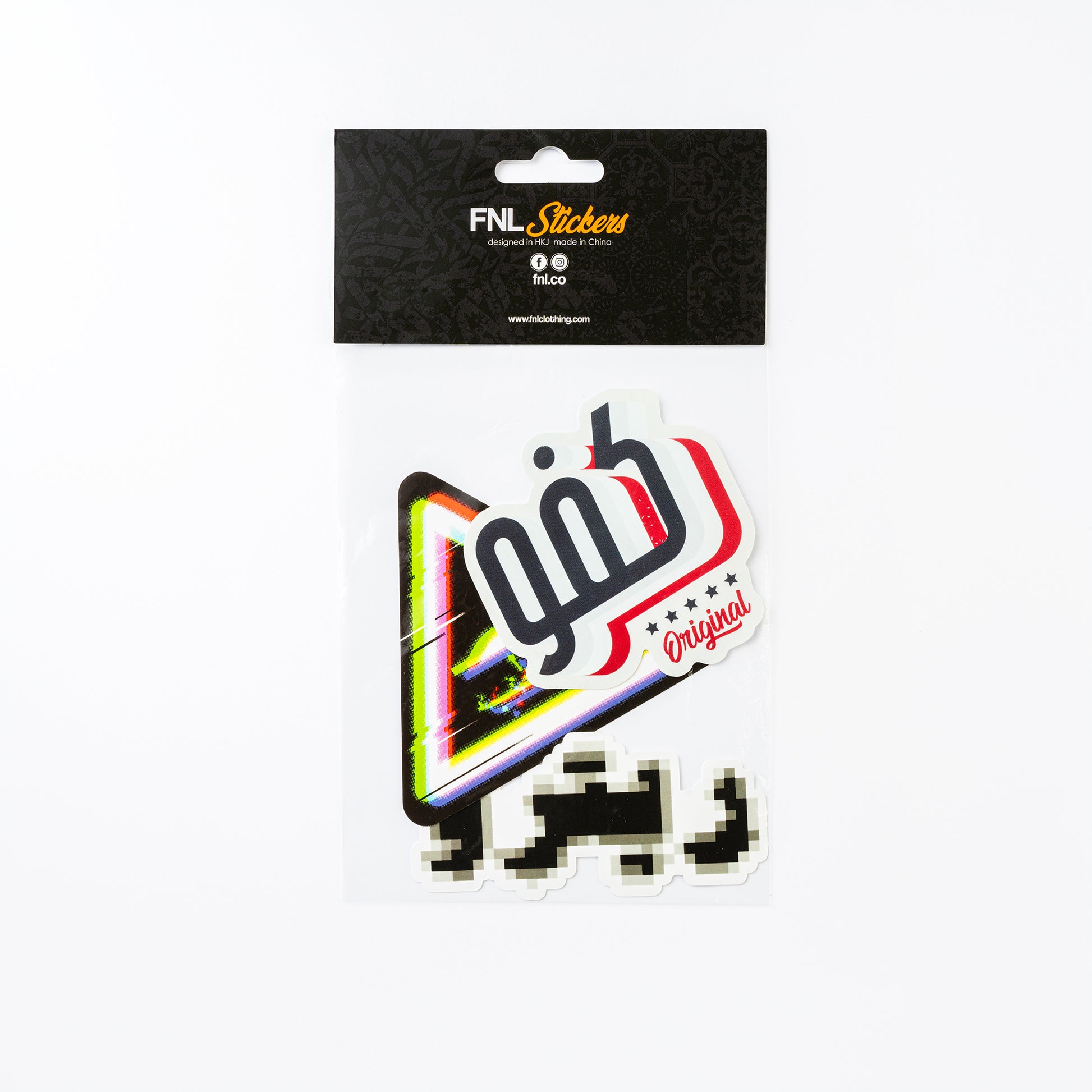 ثلاث ملصقات تحمل تصاميم FNL الشهيرة: