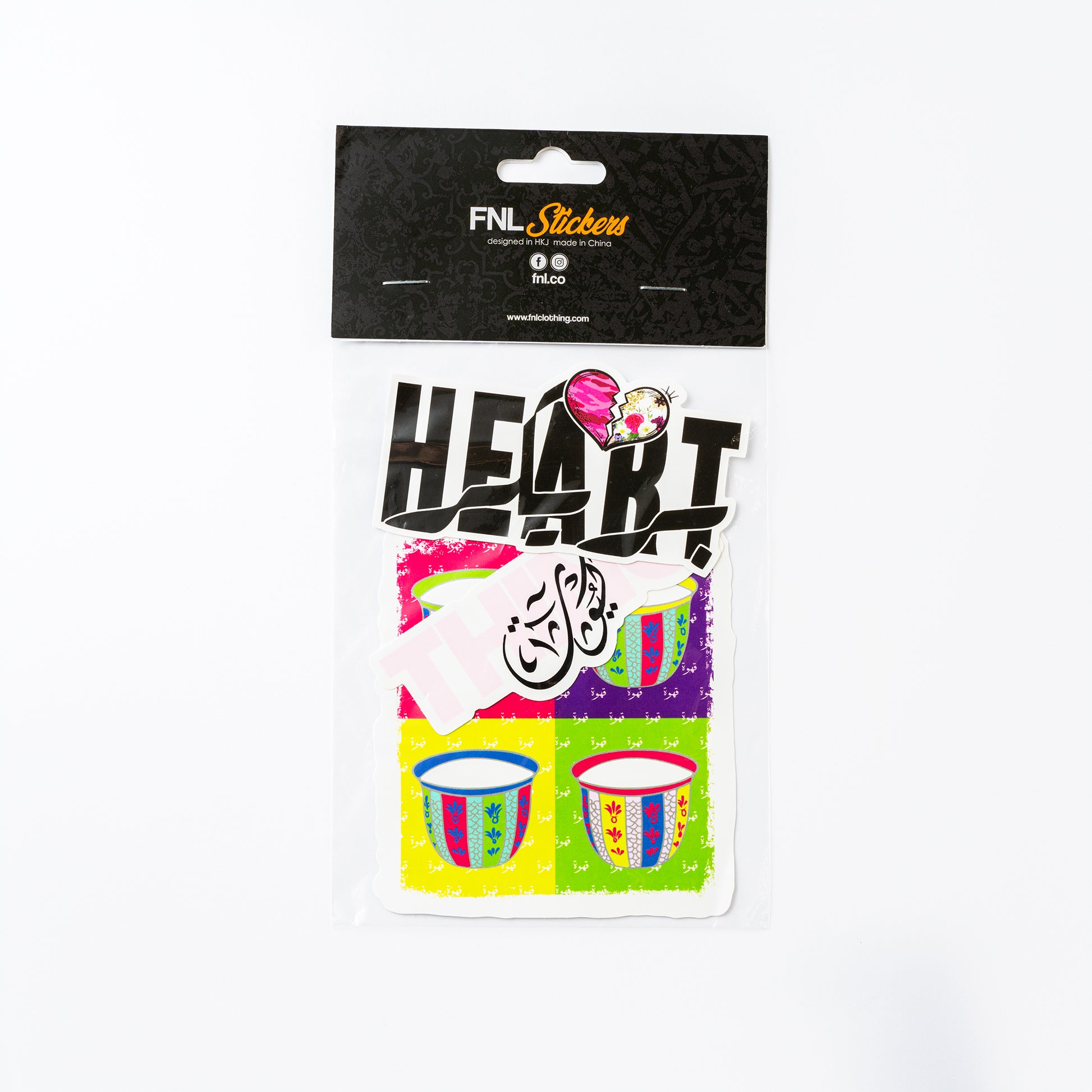 ثلاث ملصقات تحمل تصاميم FNL الشهيرة: