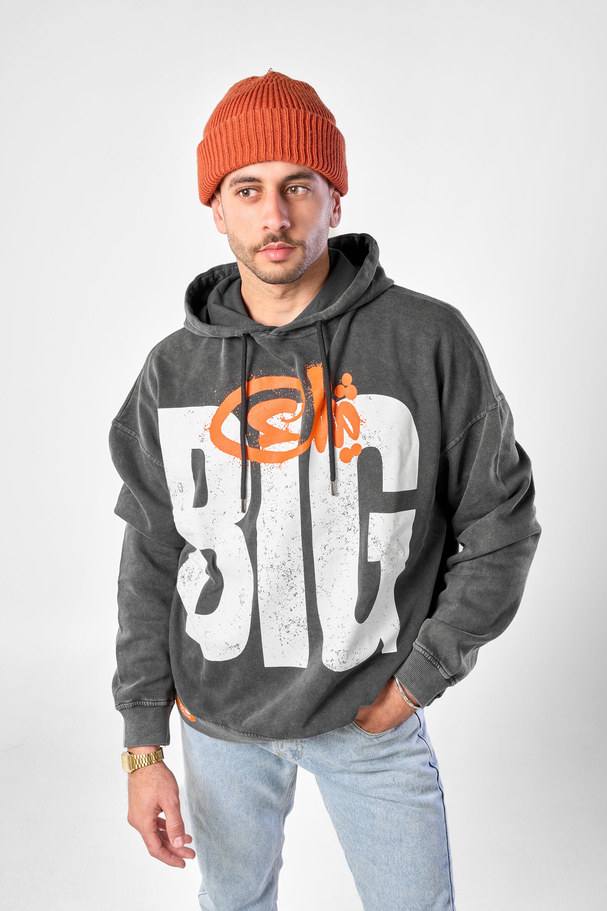 يتميز التصميم بعبارة "فكر بشكل كبير"، حيث تُكتب كلمة "فكر" بالعربية و"big" بالإنجليزية. كلمة "big" أكبر بشكل بارز من أي عنصر آخر في التصميم، مما يبرز مفهوم التفكير بشكل كبير.