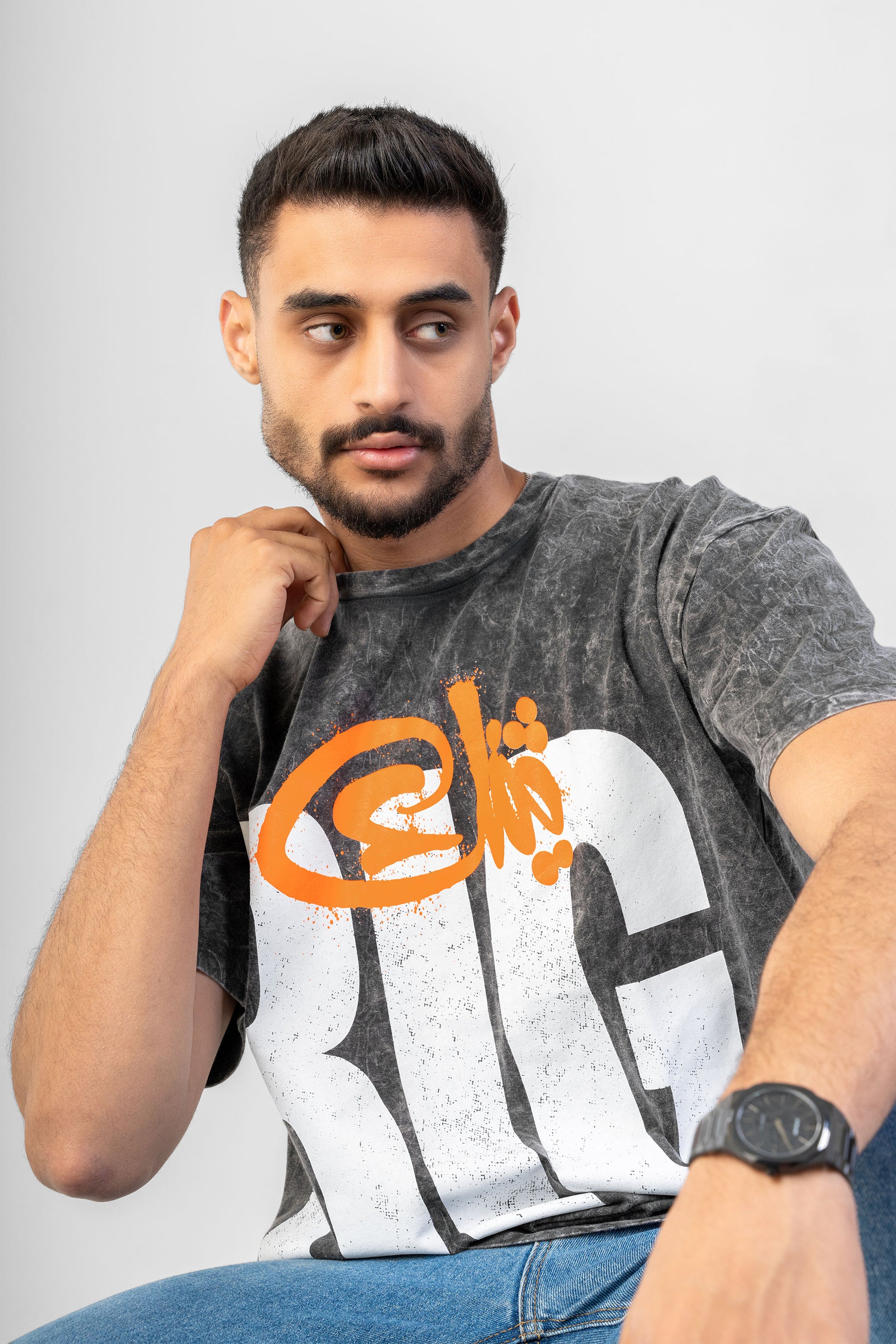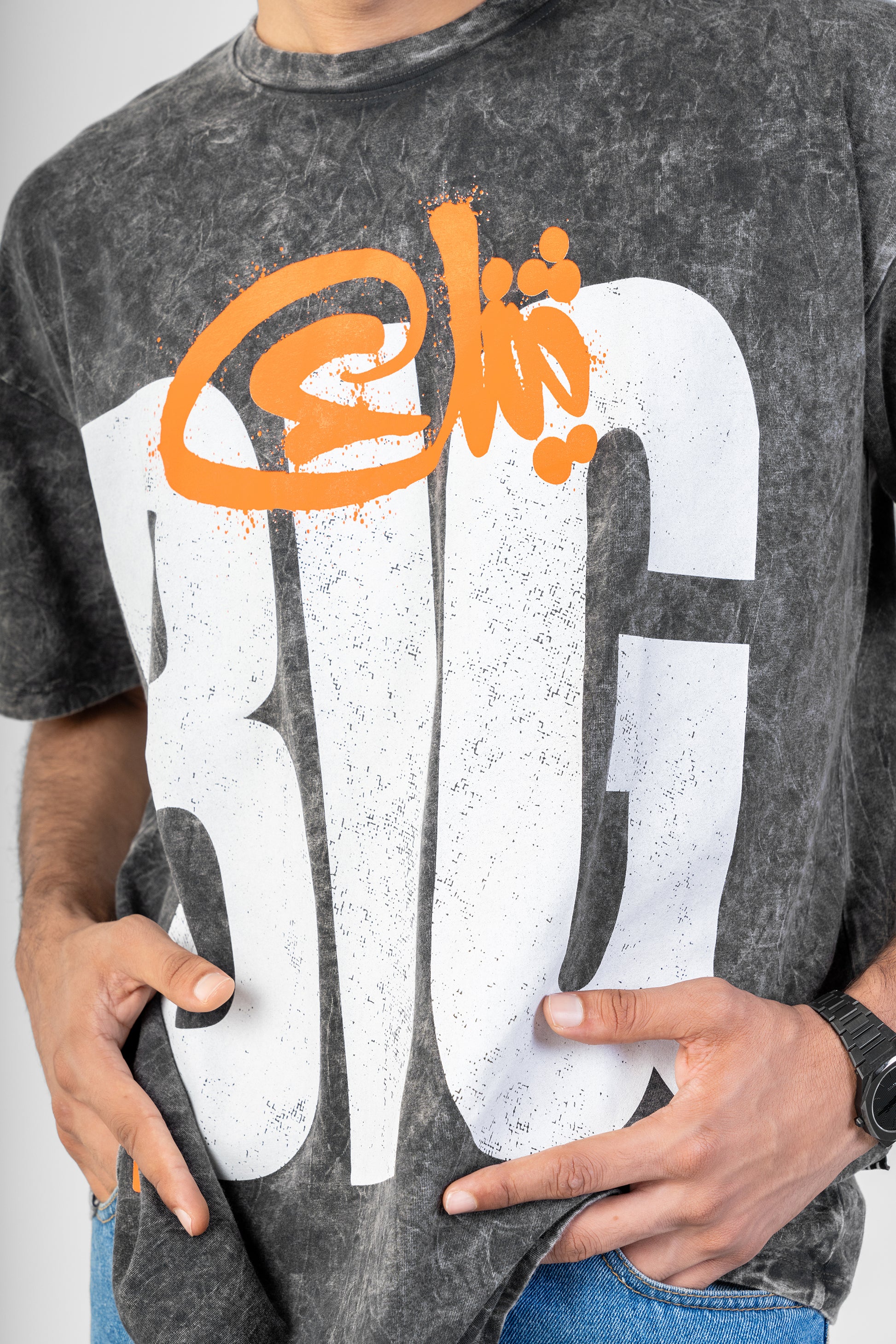 يتميز التصميم بعبارة "فكر بشكل كبير"، حيث تُكتب كلمة "فكر" بالعربية و"big" بالإنجليزية. كلمة "big" أكبر بشكل بارز من أي عنصر آخر في التصميم، مما يبرز مفهوم التفكير بشكل كبير.